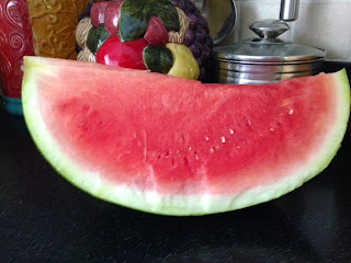 I was pretty pumped that I had found a method other than thumping to pick a ripe watermelon! I couldn't wait to try out this new found skill again. I walked into the BI-LO strutting like a peacock with a fanned tail. This trip to the same store picking from the same watermelon bin turned out quite differently. I went thru the same process looking for a definite yellow belly and dark black scars, no thumping.